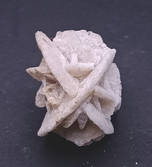 Calcita pseudomórfica de la conocida forma de rosa del desierto de yeso. Fluorescente y fosforescente con onda larga UVA. Barranco de los Cazadores, Rivas-VaciaMadrid. Madrid. España.