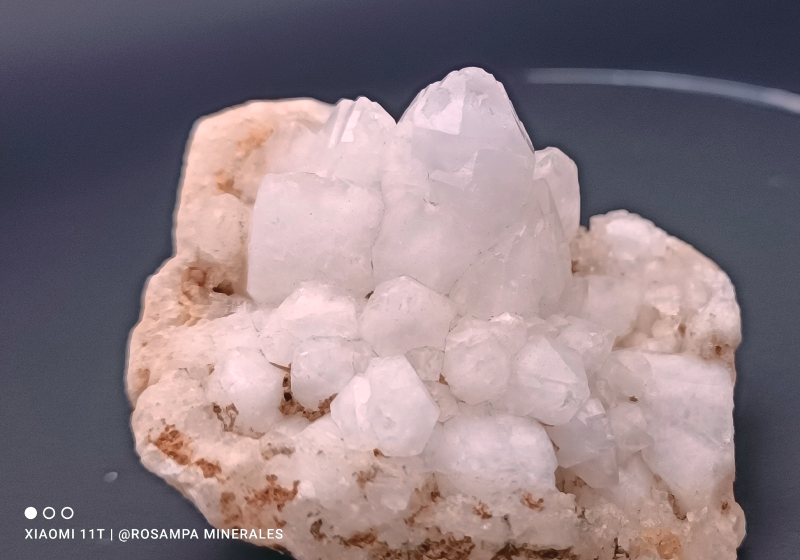 Grupo de cuarzos lechosos de Smara con aspecto de flor, una formación típica de esta localidad, con cristales bien definidos y aspecto satinado. Ejemplar estético y natural, ideal para coleccionistas de cuarzos y de minerales marroquíes.