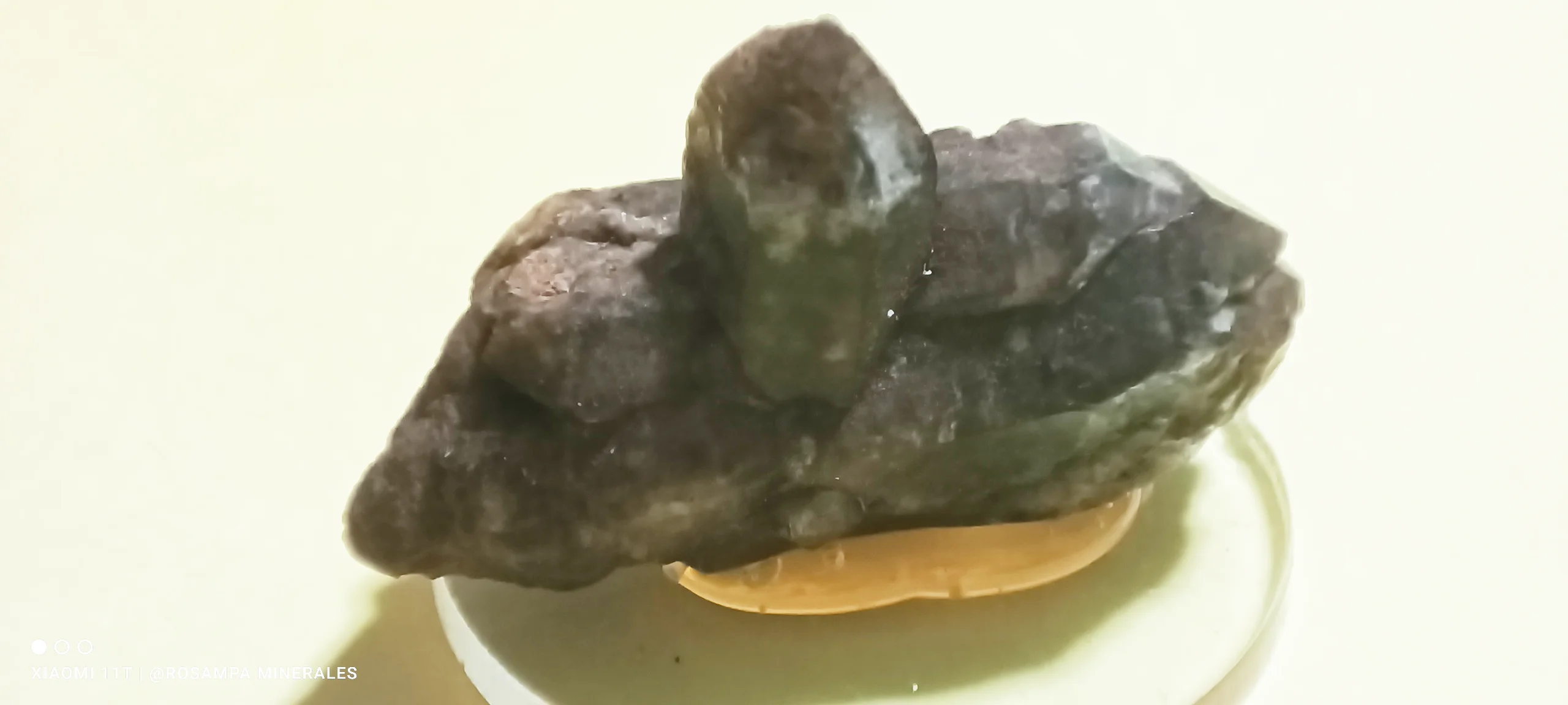 Cristales de cuarzo oscuro con crecimientos paralelos y en diferentes ángulos característicos de esta localidad Asturiana. Pieza montada en soporte circular de 25 mm de diámetro. Ejemplar ideal para coleccionistas de minerales españoles.