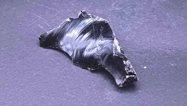 La obsidiana es una roca volcánica vítrea, considerada un mineraloide, compuesta principalmente por sílice (SiO₂). Su color más común es negro, aunque también puede ser marrón, gris, verdoso o rojizo según las impurezas. Presenta brillo vítreo intenso, dureza 5–5,5 en la escala de Mohs y fractura concoidea muy característica, con bordes muy cortantes y sin exfoliación. Es opaca y aparece en masas compactas sin formar cristales, ya que carece de estructura cristalina. Su nombre proviene del latín obsidianus, en referencia a Obsius, quien según la tradición la descubrió en Etiopía. Se forma por el enfriamiento rápido de lavas ricas en sílice, lo que impide la cristalización. En España se encuentra en las Islas Canarias (Tenerife y La Palma) y en zonas volcánicas antiguas como Cabo de Gata (Almería). A nivel mundial destacan los yacimientos de México, Islandia y Estados Unidos. Fue muy utilizada en la antigüedad para fabricar herramientas y objetos cortantes, y hoy se emplea como piedra ornamental y material de colección.