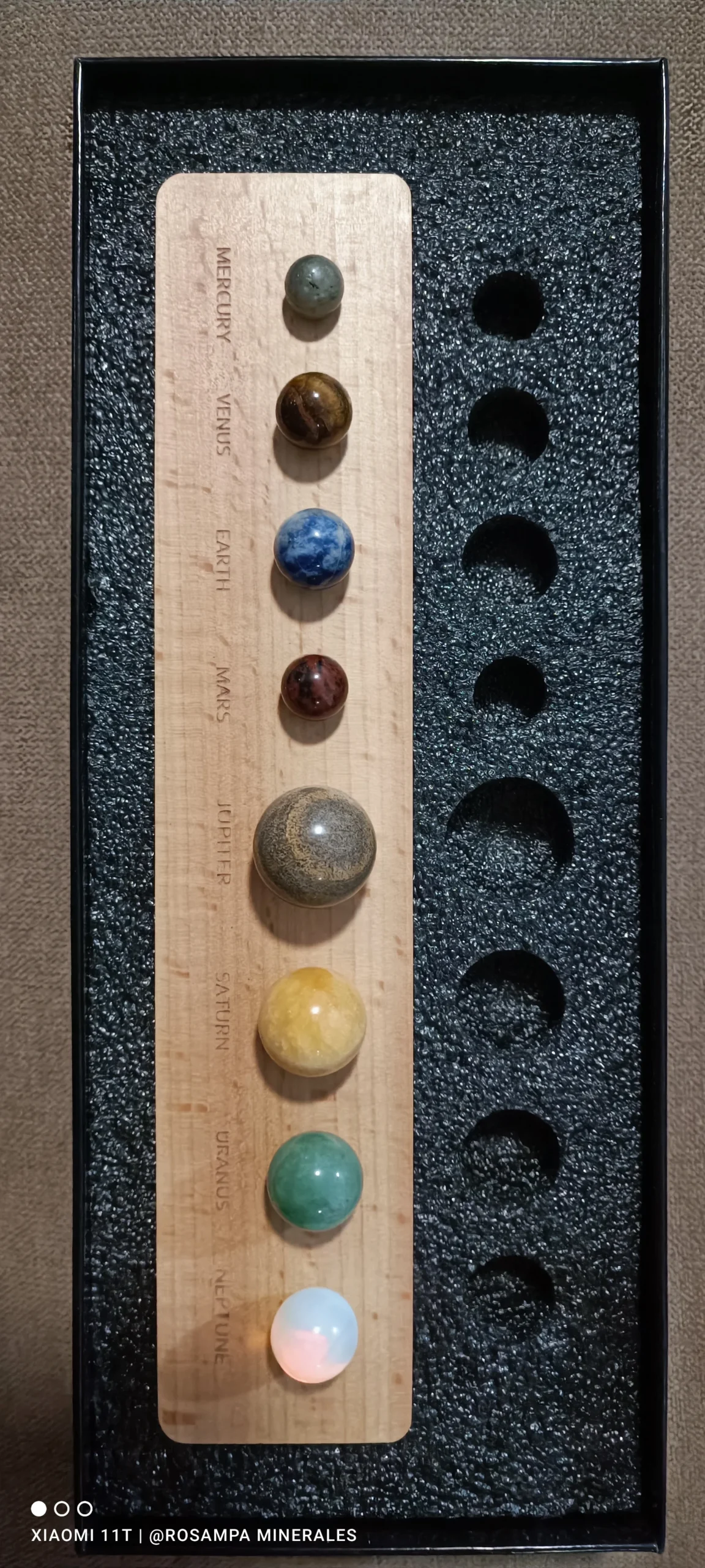 Kit educativo del Sistema Solar que incluye los 8 planetas en forma de esferas tipo gema, montados sobre una elegante base de madera. Diseñado para niños a partir de 6 años, este juego didáctico fomenta el aprendizaje de la astronomía y la ciencia STEM de manera visual y divertida.
